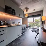 Een kitchenette met een koelkast, een oven en keukengerei is beschikbaar in dit appartement, samen met koffie- en theevoorzieningen. DeWroclawski Park Przemyslowy bushalte is op slechts 450 meter afstand.